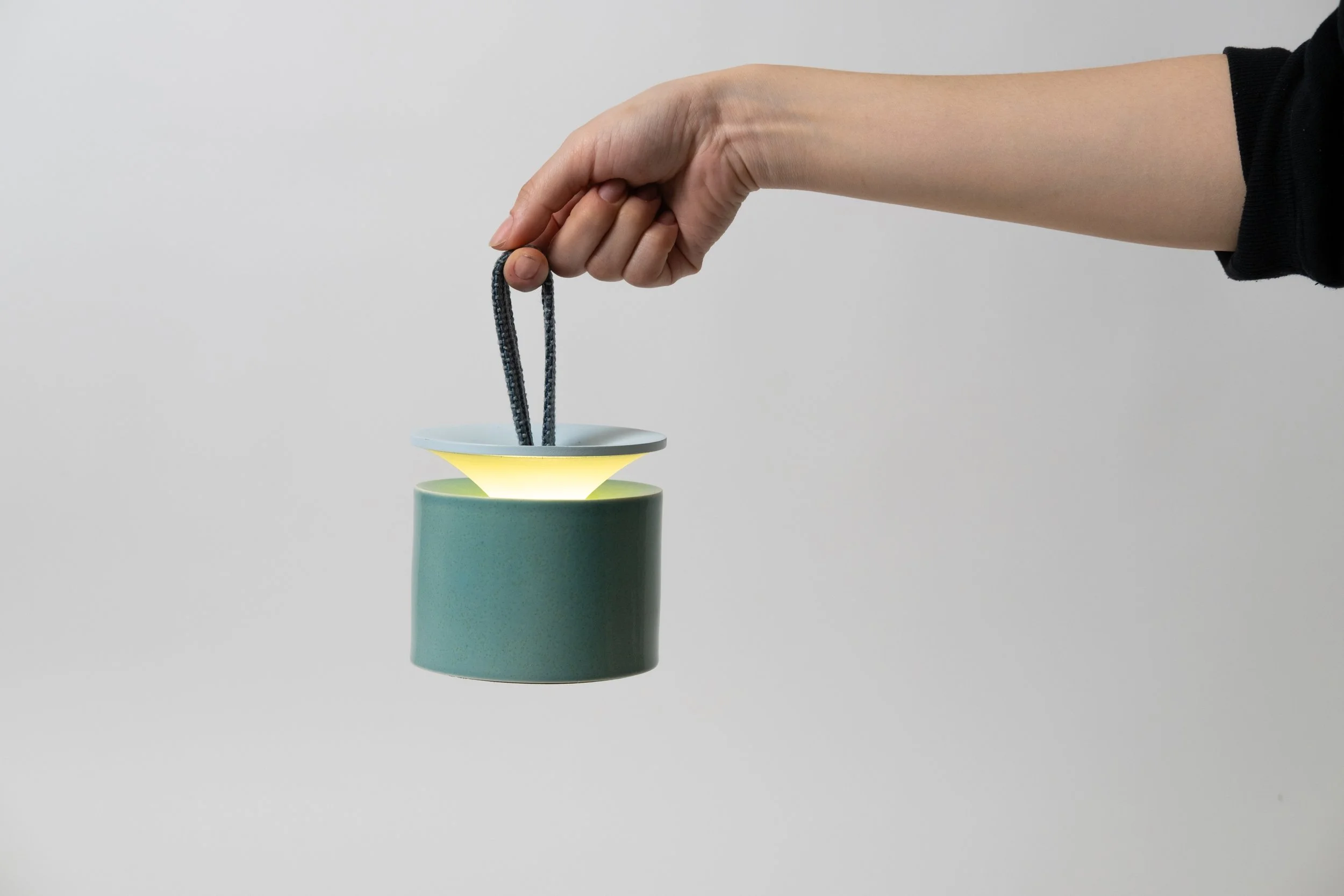 Rise is a gentle portable lamp that lights up when lifted by hand. Hung by a soft felt loop, it responds to your touch as it gently brightens while rising, casting a warm glow that reflects softly off the ceramic surface. When placed back down, the light quietly fades. Rise turns the simple act of lifting into a calming ritual of illumination.